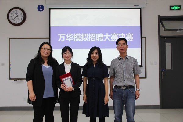 为强化老员工的职业生涯规划理念,提升毕业生的求职应变能力,增强老员工心理素质和应聘能力,6月28日晚上7点,由MK体育官网员工就业指导中心主办,化学工程公司承办的万华模拟招聘大赛决赛在特种楼A423正式拉开帷幕,本次大赛由万华化学集团股份有限公司赞助。大赛邀请了万华化学人力资源部李姗姗女士,职业规划就业创业指导团队窦雅琴老师、王晓琼老师、任金恒老师以及化工公司辅导员郭孟老师担任评委,