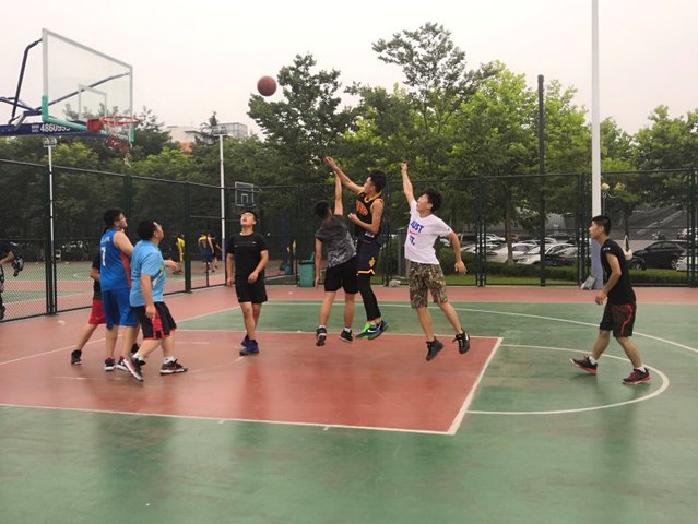 在比赛前,班长丁浩然介绍了比赛规则并以经理和辅导员为队长将同学们分为经理队和辅导员队。三个项目分别采用计时法、计分法和五局三胜制。在折返运球项目中,每队五人(包括一名女生)进行接力,率先完成的队伍获胜。两队队员排好队后,每队第一个人同时从球场中间向北面篮筐方向运球并完成一个三步上篮动作,此后运球到南面篮筐,完成一个三分球的投掷后下一个人即可开始。最终经理队以35秒的优势赢得了折返运球项目的胜利。在定点积分投篮项目中,全体同学高度参与,热情高涨,投篮比赛结束后依旧围在篮筐边上进行投篮。最终辅导员队以36:28的成绩胜出。团体篮球赛是本次趣味篮球赛的重头戏。本着友好,拼搏的精神,比赛在裁判的哨声中开始。比赛开始后,队员们摆开姿势,开始激烈的进攻、防守。场外的同学们也目不转睛的盯着场上的比分。最终经理队在班长丁浩然的绝杀下以3:2的成绩赢得了团体篮球赛的最终胜利。根据比赛三局两胜的规则,经理队赢得本次趣味篮球赛的胜利。赛后同学们合影留念,本次趣味篮球赛圆满结束。