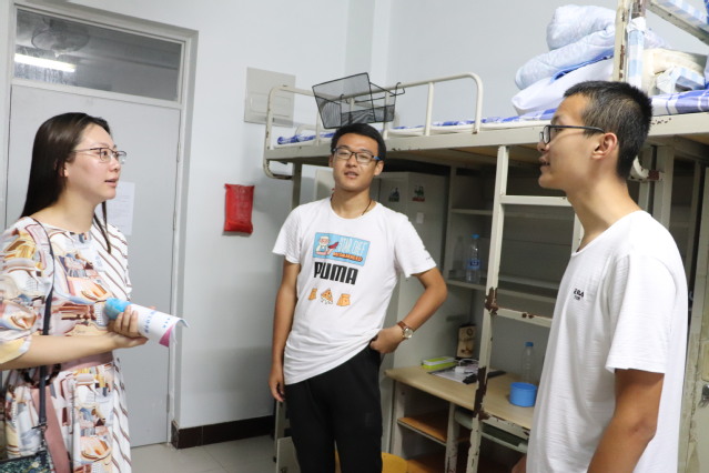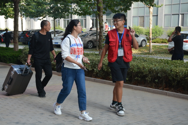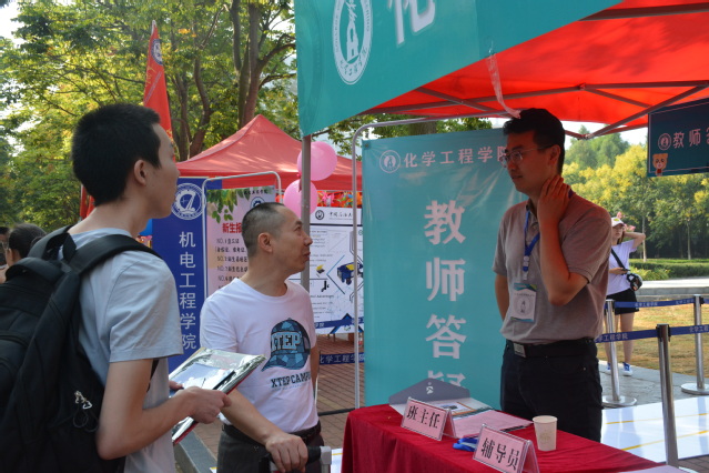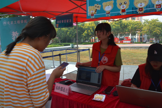 公司迎新点分专业设置了报到通道,那里的工作人员热情地为新生办理报到手续,指引新生找到宿舍并领取钥匙。公司还在迎新点设立了家长休息区、教师答疑区和化院特色背景墙,其中,家长休息区供提供饮水服务,并为家长们互相交流和短暂休息提供了场所;教师答疑区由班主任和辅导员轮流值班,为前来咨询的新生和家长答疑解惑;化院特色背景墙成为来往新生与新生、新生与家长合照留念的热门地点。