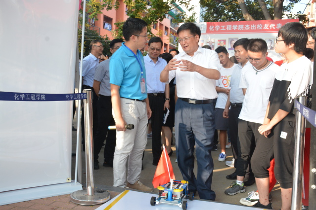 9月9日,公司党委书记王勇一行人来到新生报到点,与报道新生及新生家长热情交谈,了解新生情况,表达对新生的关怀,寄予美好期望。交谈过后,王书记一行人又观看了chem-e-car小车演示,并鼓励员工积极创新。