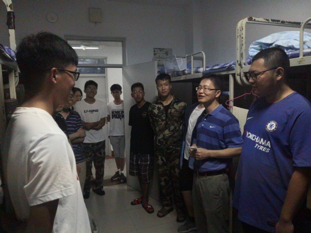 9月13日中秋节,公司经理杨朝合教授一行,走进新生宿舍看望2019级新生。此次活动涉及化学工程与工艺、能源化学工程、应用化学、化工安全工程、环境工程等五个专业,公司领导、教师分成11个小队分别去到13号宿舍楼和15号宿舍楼,与新生面对面交流,唠家常、谈理想,指点迷津,解惑答疑。