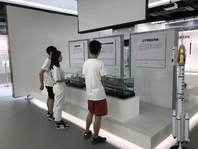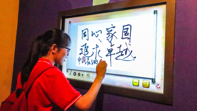 实践队员于成果展示体验厅聚焦新旧动能转换,追寻山东发展记忆