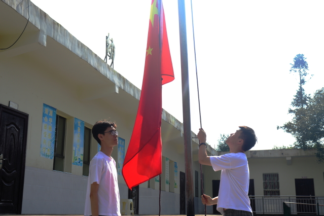 实践队成员在小学升国旗