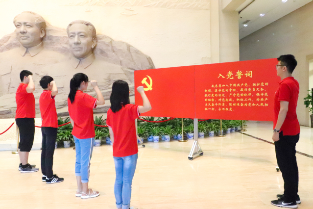 实践队成员在伟人雕像前宣誓