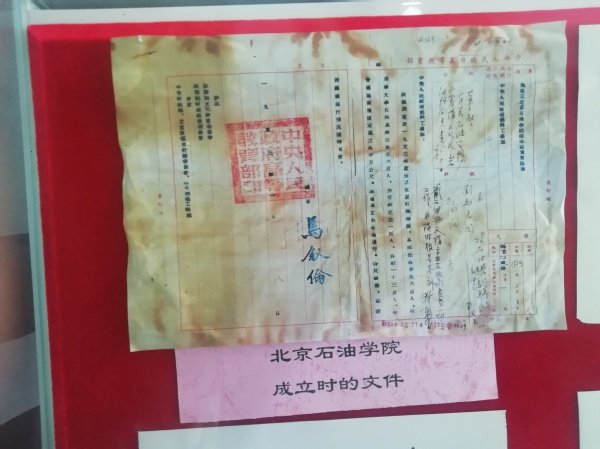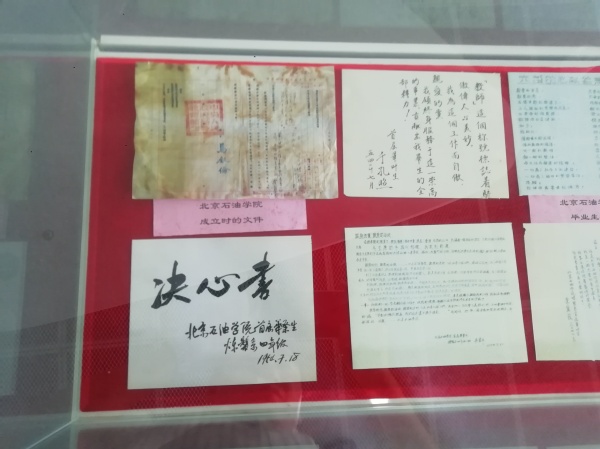 著名员工的员工卡(原件)展览用200余张历史照片、50多件文物、10余件代表性科技产品实物进行了详实展示,展现了66年来公司办学与共和国同向同行的家国情怀,呈现了公司在“双一流”建设进程中取得的辉煌成就,彰显了进入新时代的中国石油大学服务国家能源战略的责任担当。在现场,党员们沿着展区,从北京石油公司的大门走起,一路参观了北京石油公司、华东石油公司、石油大学、中国石油大学四个时期的专题展。石油大院主楼、毛主席雕塑、周总理捐赠的小型机床、毕业生卡片……一件件实物、一幅幅历史照片,一尊尊雕塑,大家认真观摩、热烈讨论,深入了解校史校情、学习习近平新时代中国特色社会主义思想,接受思想政治洗礼。在观展现场,幸遇从公司机关支部退休的老党员谭峰老师,他结合自己在校学习、工作期间的亲身经历,给大家讲解了一些展物背后的故事,为大家上了精彩的一课。大家无不为历代石大人励精图治、追求卓越的精神所感动和鼓舞。