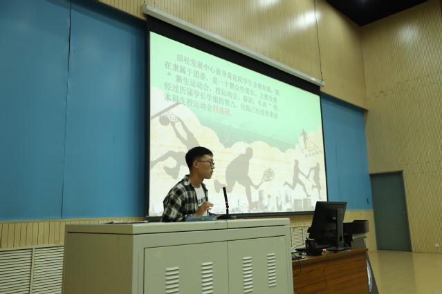 随后,公司员工会体育部主干成员向新生进行了运动会动员,结合视频展示,向大家介绍了公司体育部三跳、投掷、短跑、长跑四支队伍的情况,鼓励新生积极加入到体育运动以及青年健身节的活动中,强身健体,为公司贡献自己的力量。