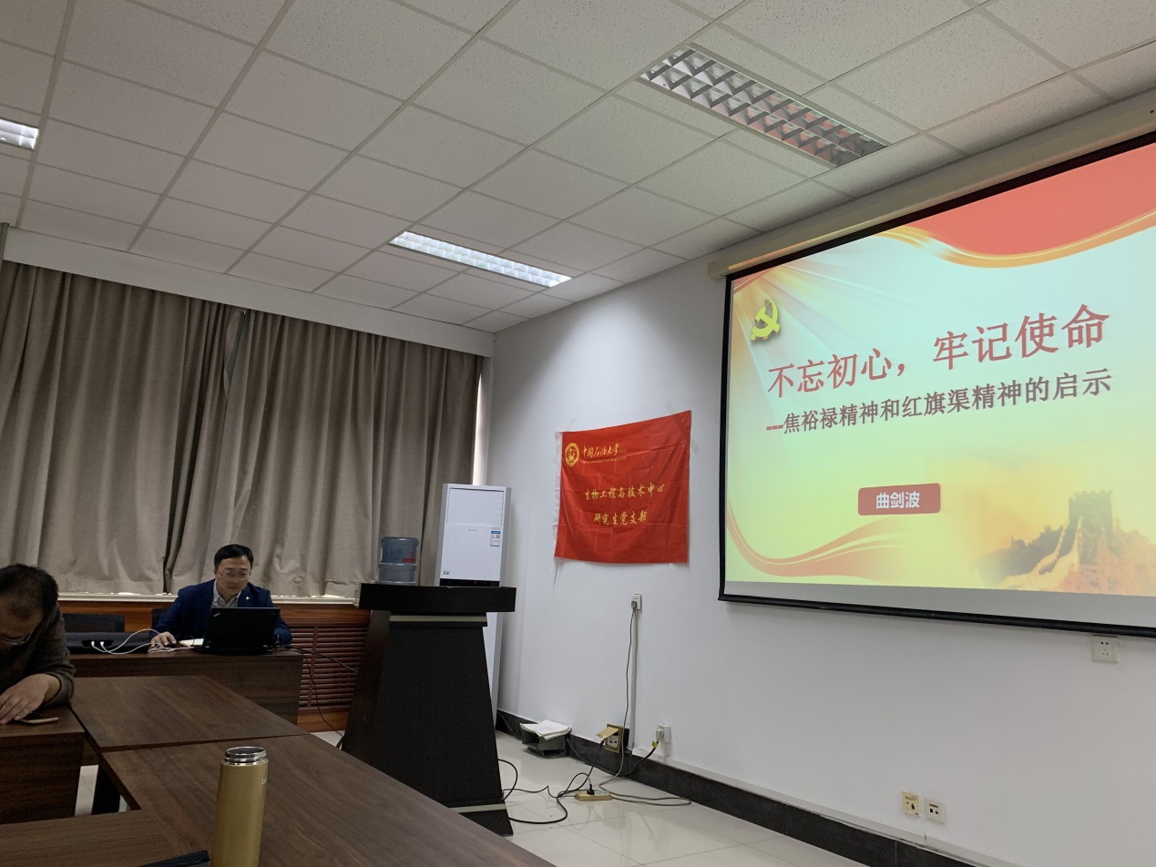 根据公司“不忘初心、牢记使命”主题教育安排,10月22日下午,生物中心党支部书记曲剑波在逸夫楼340会议室为中心教工党员和研究生党员上了一堂以“不忘初心、牢记使命——焦裕禄精神和红旗渠精神的启示”为主题的党课。