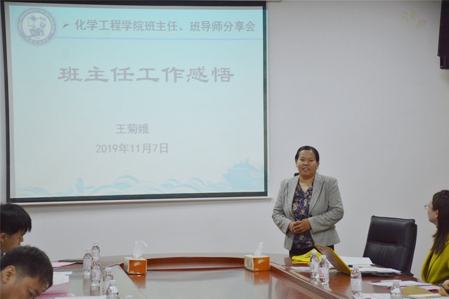 随后,班主任代表王菊娥、班导师代表刘会娥依次进行发言。王菊娥老师结合自身经验,分别从“以人为本,科学育人”“身兼数职,三全育人”“搭建平台,文化育人”三个方面与参会人员分享了做班主任工作的感受。她表示:“在工作中,应始终坚持引导员工‘以员工为中心,走全面发展之路’,探索实践‘孕育—成长—发展—成熟’的工作理念。”化学工程系刘会娥老师作为班导师代表,就自身做班导师的经历与到会老师进行了交流,她指出,作为班导师应了解员工学习过程中的需求并熟悉员工的培养方案,尽可能提前想到员工在各个阶段可能遇到的问题或困难。