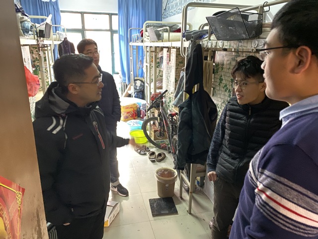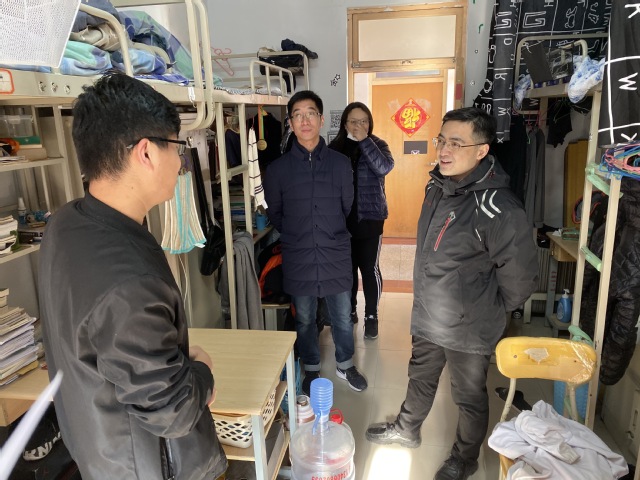 1月15日,王迅与辅导员队伍深入本科生宿舍及研究生宿舍,对宿舍安全隐患进行了排查并慰问了部分假期留校员工。交谈期间,2016级本科生王成标表示:“虽然其他同学们放假都走了,王迅书记假期亲自来看望我们,我们并不感到孤单。”