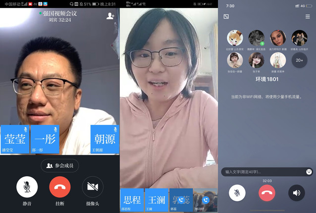 图片分别为化工1801、1802和环境1801班线上班会截图