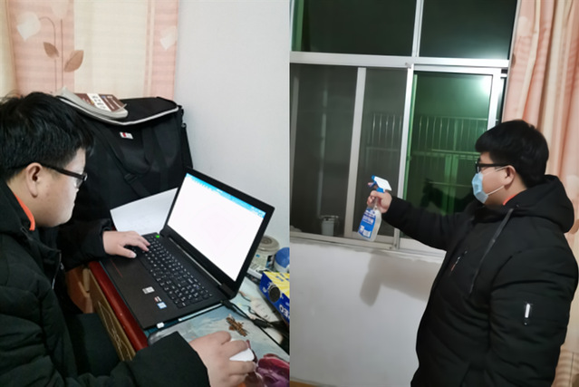 化工系第一员工党支部查明浩记录家人体温、每日进行消毒
