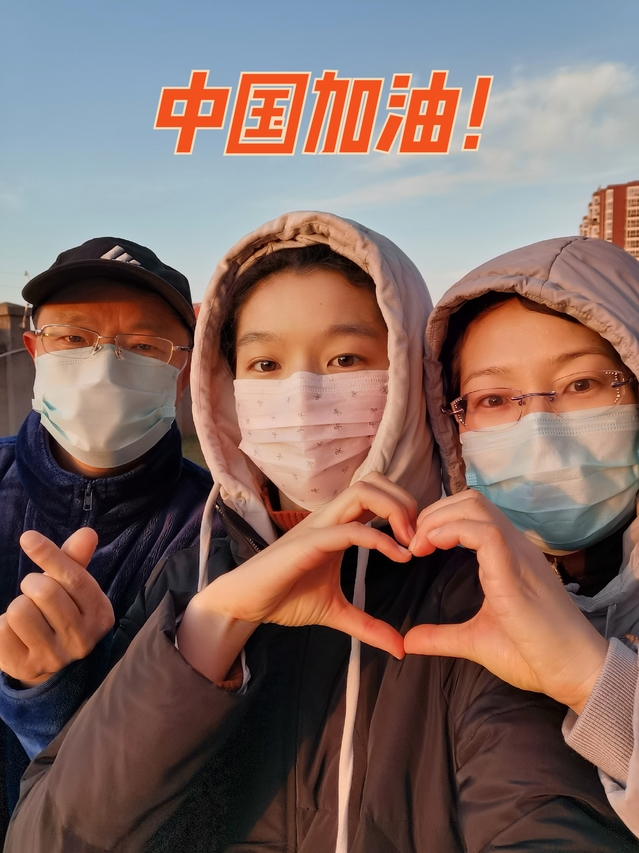 能化1702班许艺菲一家拍摄照片《中国加油》