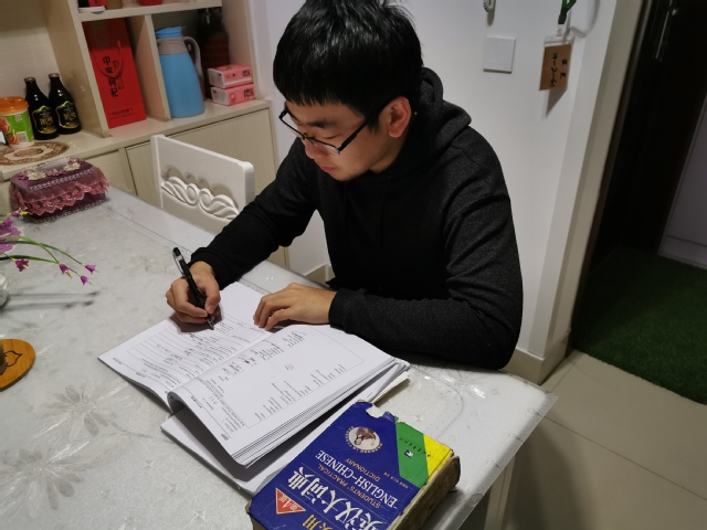 全国硕士研究生招生考试虽受疫情影响稍有推迟,但仍在按预期计划进行,员工们不愿浪费宝贵时间,打开课本复习知识,准备在复试时向面试导师展示化院员工的扎实专业技能,以顺利通过复试考核。面试时可能需要英语个人介绍,化工1607班武超凡在这方面稍有不足,便在家中模拟面试现场,由家人担任导师,指导其面试表现,弥足英语口语短板。
