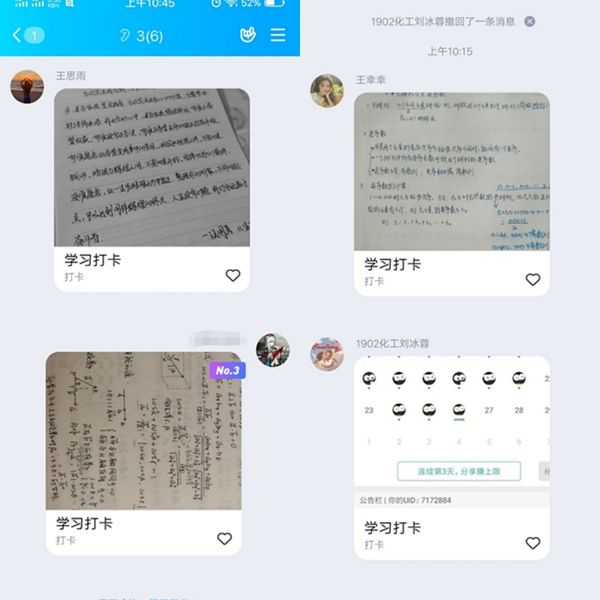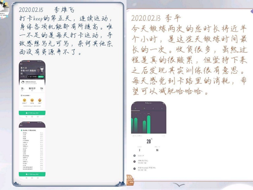 学业督促也是成立学习互助小组的初衷。在新学期正式开课前期,各小组通过分析总结上学期期末成绩、线上答疑等方式,加强学习互助,解决学习中遇到的问题,提高学习积极性。小组还组织了“寒假不虚度”打卡活动,组员每天进行体育锻炼或发展兴趣爱好并打卡,相互监督,养成居家的健康生活方式。
