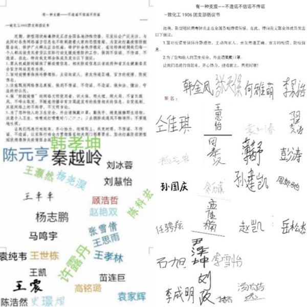 为号召支部成员正确看待病毒防疫相关消息,化工1902团支部和化工1906团支部发起线上“不造谣不信谣不传谣”倡议活动。倡议书提到:“要从政府和卫生健康委员会等权威新闻媒体和公司官方媒体平台了解疫情信息和相关安排”,通过倡议书“云签字”活动提高了支部成员对虚假信息的警惕性,利于科学防疫。