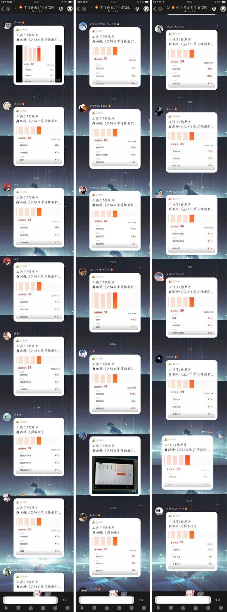 疫情当前,员工暂时无法返回校园,但是“停课不停学”的精神始终贯穿在团支部的活动中。坚持规划好每日学业与作息,读书分享、单词记忆、家务劳动……内容丰富的打卡活动为宅家防疫生活增添着色彩与希望。