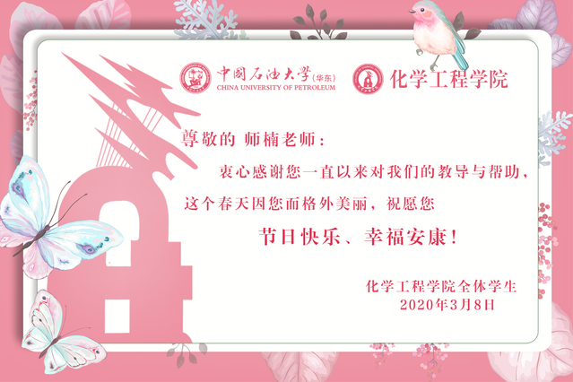 在这个“疫”样的春天,第110个国际劳动妇女节、我国第97个妇女节、公司第21个思美节与疫情防控的关键期相遇,化学工程公司在团结一心、共克时艰的特殊背景下,面对师生“居家开学”的特殊情况,积极利用线上方式开展丰富多彩的活动,充分利用网络云平台庆祝节日到来,为公司的女性师生送去最真切的关怀和最诚挚的祝福。