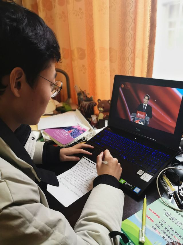应化1702班倪国琪在家乡山东临沂观看了直播,他表示:我们或许无法驰援武汉,但却并不意味着我们无事可做。遵守延迟开学规定、增强疫情防控意识和自我防护能力,积极配合疫情防控工作,这些是我们当前力所能及也是理所应当做的事,居家做好网课的学习,全面提升科学素养和人文情怀便是我们做出的贡献。此外,我们要关注自身和家人健康状况,可以向身边的朋友家人宣传疫情防控的有关政策和要求,为他们普及疫情防控的相关知识。我相信,当我们战胜疫情,中国将走向更加辉煌的未来!