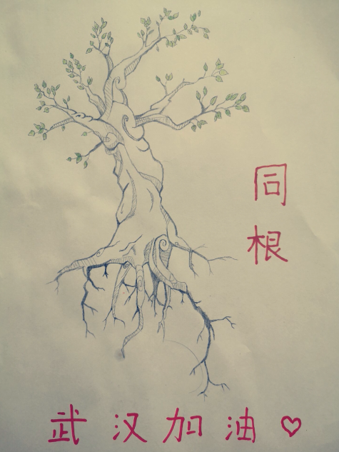 赞颂女神,同心抗疫。生活中,我们身边有很多令人敬佩的女神。而在这特殊的时期,又涌现出一批逆行的最美身影。2018级员工通过绘画、剪纸、诗歌、书法等形式赞美女性、祝福女性。化工1801班员工邵一彤创作的绘画作品《同根》,寓意全国人民同武汉人民一起,连理同心,共抗疫情。