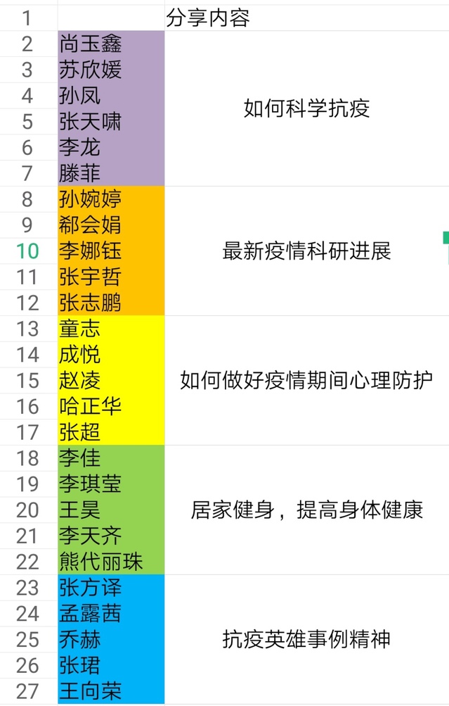 各团支部结合实际情况,积极发挥学科和专业优势,分享思考体悟,传播健康理念、传染病防控知识以及心理健康、锻炼运动等知识。化工1801团支部积极分享科学防疫知识、居家健身小技巧,互相鼓励,团结一致,共抗疫情;本研1801团支部结合专业所学讨论有效的消毒方法、酒精的制备方法、口罩材料及工艺流程等方面的知识;应化1801和1803团支部从如何科学防疫、疫情科研进展、做好心理防护等方面进行了交流;环境1801团支部则从专业出发,探讨环境工程学科在疫情防控中所能做出的贡献,明确责任和使命,扎实学习,砥砺奋斗,增强本领。其他团支部也根据实际需要,邀请专业老师开展了经验分享会。正如能化1801团支部的房欣同学所说:“我们有信心在党和国家的统一领导和部署下,齐心协力,众志成城,取得新型冠状病毒肺炎疫情防控战的全面胜利。”