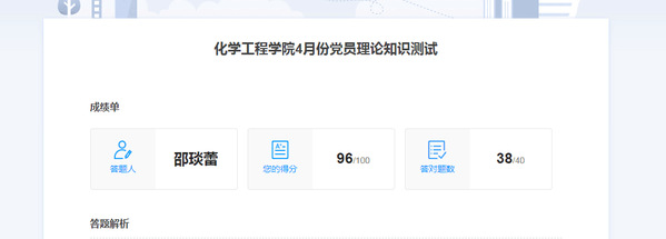 公司每月统一组织党的理论知识测试,旨在增强员工党员学习党的理论知识、了解国家方针政策的自觉性,提升思想政治觉悟与政治理论水平。本次测试结合疫情防控工作要求,通过线上开展,一定程度上营造了“居家不忘学党团”的良好氛围,同时以党建带动学风建设,有利于形成浓厚的学习氛围。