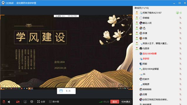 为进一步加强疫情期间年级学风建设,帮助同学们更好地做好居家线上学习,提升专业知识技能,营造良好的学习氛围,4月27日—5月5日,2018级各班级通过腾讯会议、QQ语音等平台开展学风建设主题班会。
