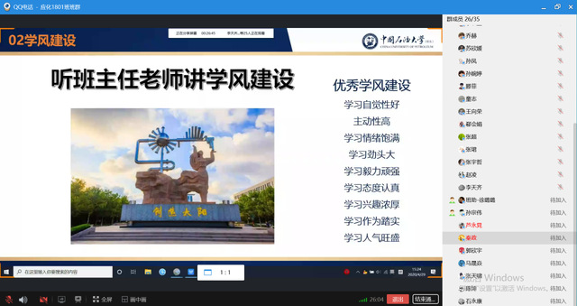 开展线上学风建设主题班会