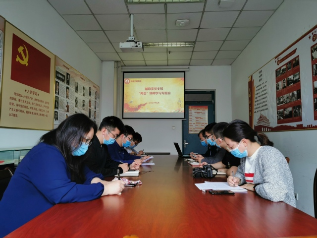 会议伊始,刘伟首先带领大家认真学习了《政府工作报告》,并结合报告进一步分析了疫情影响下的国内外形势,引导大家强化作为高校辅导员的紧迫感、使命感和责任感。随后,各支部党员纷纷就两会精神学习成果与个人感悟进行发言。支部党员朱景顺表示:“相比之前,政府工作报告简短而更加有力,对人民至少、经济发展、就业等关键性的重大问题进行了部署,指明了本年度的工作目标与工作方向,体现了党中央、政府的坚强信心、注重效率、管理能力现代化的思路,真正是把人民利益置于最高位置,体现了政党的先进性。”支部党员郭孟将两会报告与员工工作相结合,谈道:“在1万余字的政府工作报告里,仅‘就业’被提及39次之多,就业作为缓解疫情冲击,发展经济、保障民生,落实‘六稳’‘六保’的重中之重,被提升到前所的高度。因此,全力保障员工就业,确保员工高质量就业,实现员工就业的逆势飞跃,是员工工作当前最重要的工作。”