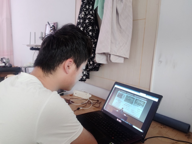 员工范金磊在家观看返校第一课