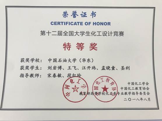 2018-08-10第十二届全国老员工化工设计竞赛华北赛石大获特等奖