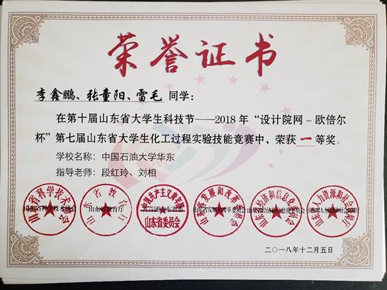 2017-11-17山东省化工过程实验技能竞赛石大获一等奖