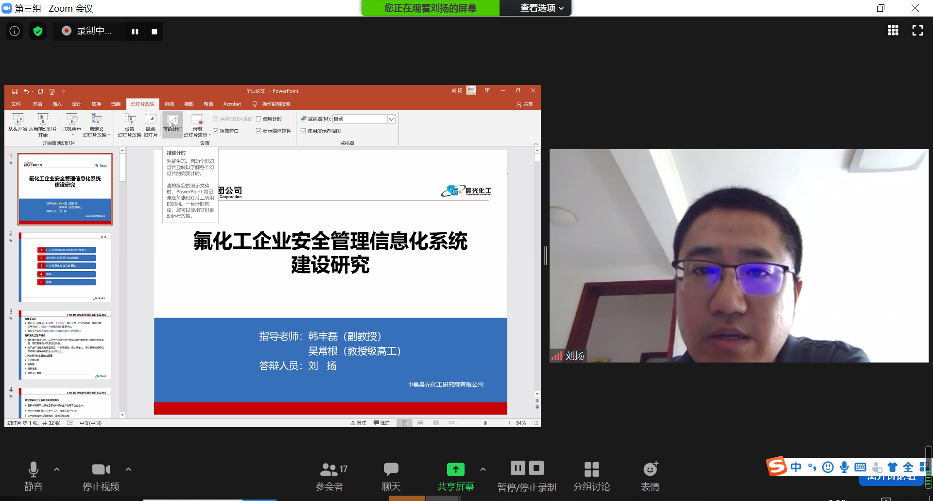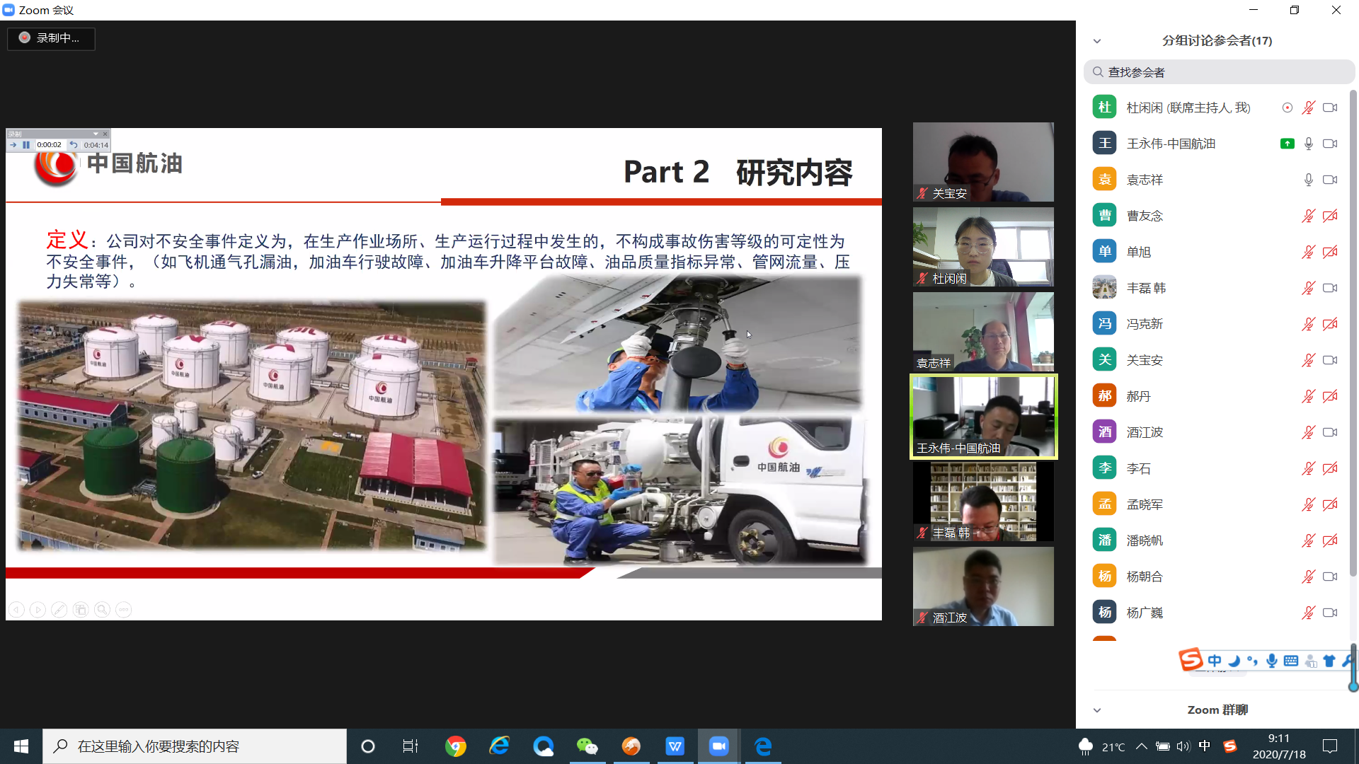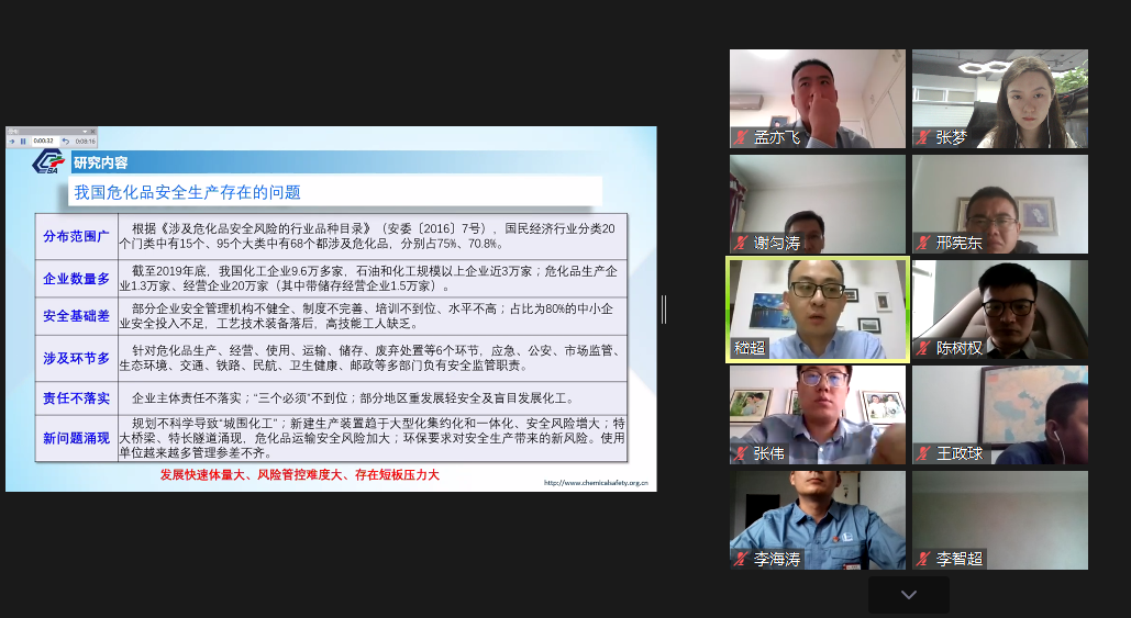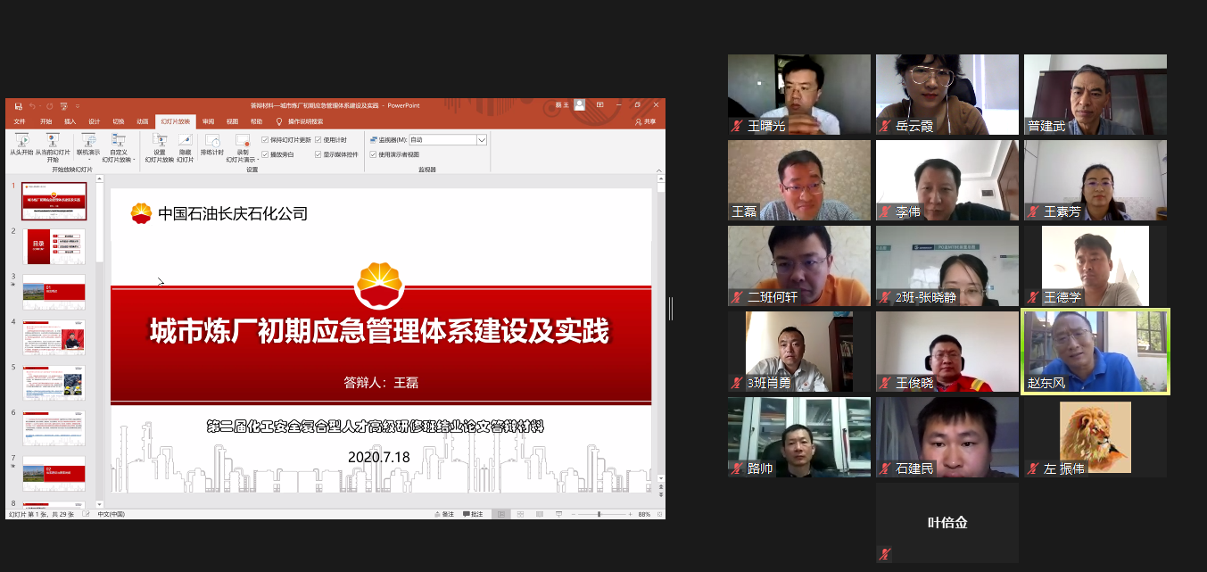 7月18日上午,MK体育官网第二届化工安全复合型人才高级研修班线上答辩工作顺利开展。来自中石油、中石化、中国化工、万华化学等送培企业的专家和校内导师团共同组成此次答辩专家委员会。化学工程公司经理暨安全监管监察公司(青岛)经理杨朝合、安全监管监察公司(青岛)专家委员会主任赵东风、赵朝成教授和刘义副经理分别担任四个答辩专家组组长。