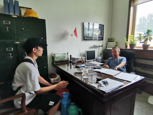 实践队员询问张主任污水处理的详细流程 李俊宏摄