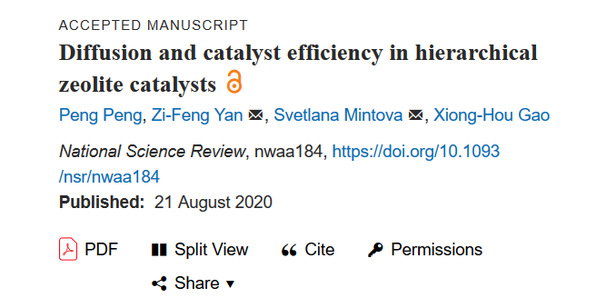 近日,《国家科学评论》(National Science Review,NSR)刊发了公司化学工程公司阎子峰教授催化材料团队在沸石催化剂工业化应用方面,题为《多级孔沸石催化剂的扩散与催化效率》(Diffusion and catalyst efficiency in hierarchical zeolite catalysts)的最新综述文章。论文第一作者为公司化学工程公司毕业博士研究生彭鹏,化学工程公司阎子峰、敏托娃教授为共同通讯作者,MK体育官网为第一通讯单位。