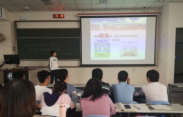 每年的十月十六日是世界粮食是日。2018级各团支部以世界粮食日、全国爱粮节粮宣传周为契机举办了“制止餐饮浪费,培养节约习惯”主题班会与交流活动,号召广大同学节约粮食,关注粮食安全。