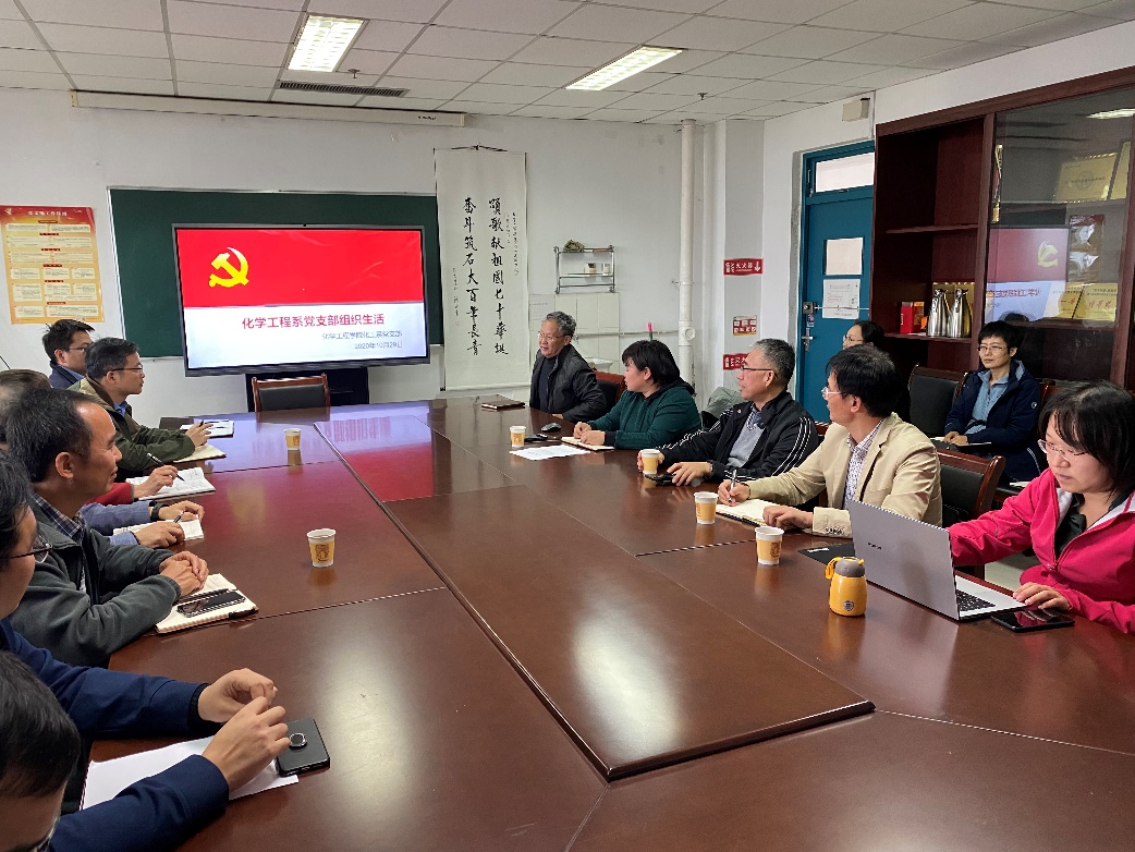 为了进一步落实立德树人根本任务,助力课堂思政建设,10月29日下午,化学工程系党支部在A335组织召开“思政进课堂,锦囊助你行”主题活动。会议由书记丁传芹主持。集团巡察组成员王备战和赵倩、经理杨朝合、系全体党员参加了此次会议。