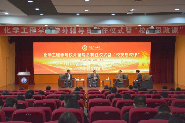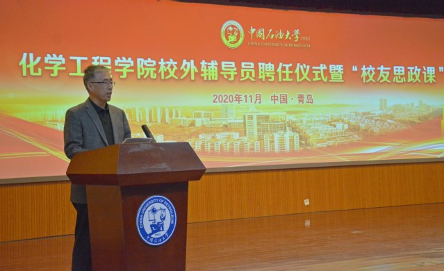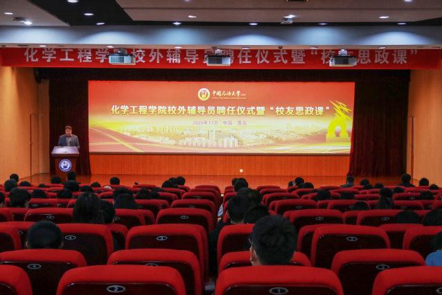 为了进一步凝聚育人合力,推动思政工作创新发展,11月8日,化学工程公司在逸夫礼堂举办校外辅导员聘任仪式暨“员工思政课”活动,聘任山东源根石油化工有限公司总工程师、加工82级员工袁俊洲,青岛惠城环保科技股份有限公司董事长、加工88级员工张新功,全国劳动模范、化工02级员工张磊,青岛石科化工技术有限公司总经理、应化10级员工满聪为校外辅导员。公司党委副书记万云波、党委员工工作部(处)部(处)长姚海田,公司经理杨朝合、党委书记李国、党委副书记王迅、经理助理陈小博出席仪式,班主任与员工代表参加活动。