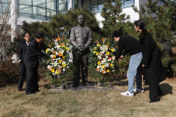 师生代表向杨光华先生塑像敬献花篮 杨安摄影