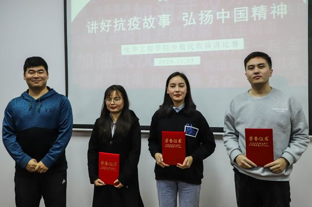 经过年级初赛选拔推荐后,本次比赛共有9位选手参加。他们用诚挚的语言、优美的声音、或激昂或低沉的语调,讲述了自己身边发生的以及自己参与的“抗疫故事”。其中,环境1702班尼加提·斯地克和大家分享了自己在疫情期间担任志愿者的经历,他的主动担当与责任意识让在座的评委和观众印象深刻;环境2001班的白玛拉姆讲述了自己高中时期发生的真实故事:为了保证员工们顺利回到公司读书,公司的董事长、老师、每个基层工作者都付出了巨大的努力。她的讲述让人潸然泪下,不禁把大家的思绪带回了当时那个充满爱和温暖的冬天。经过激烈的角逐,化工(卓越)1808班马翠等三位选手获得三等奖;环境1802班次仁央金、环境1901班娜菲莎·艾赛提获得二等奖;环境2001班白玛拉姆获得一等奖。参赛选手化工2001班帕拉提赛后谈道:“这次演讲比赛给了我们一次展示自己的机会,也给了我们分享所见所感的平台。通过这次演讲比赛,我了解到了更多感人的故事,也越发地感受到了祖国的强大和繁荣。作为一名20级新生,这次比赛让我更加坚定了好好学习专业知识的决心!”