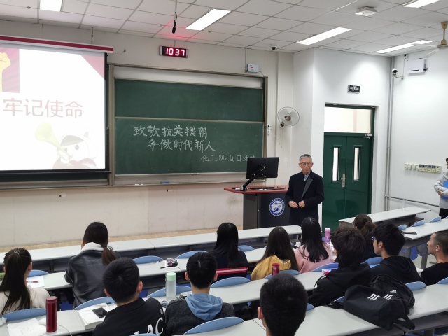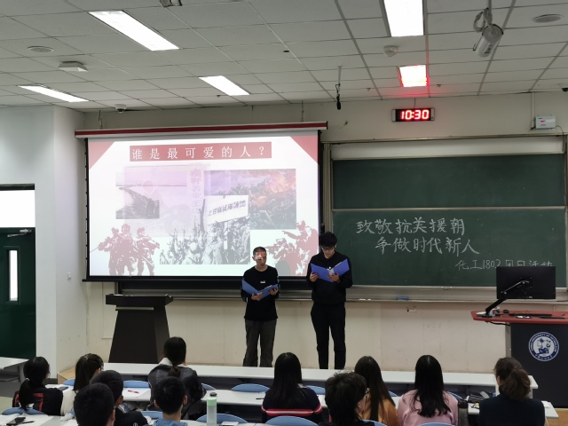 今年是中国人民志愿军抗美援朝出国作战70周年。为进一步弘扬伟大的抗美援朝精神,引领员工崇尚英雄、致敬英雄,增强员工爱国主义情怀,11月17日,化工1802班于东环107教室举办“致敬抗美援朝,争做时代新人”主题团日活动。经理杨朝合受邀出席,辅导员刘伟及化工1802班全体员工参加本次活动。