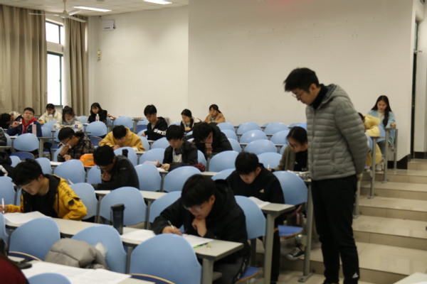 为帮助员工提前熟悉考试流程,以积极的心态备战英语四级考试。11月22日,化学工程公司在东环301-307教室举办了英语四级模拟考试。本次模拟考试要求公司19级全体员工参与,辅导员王兆兴、耿旭超到场巡考。
