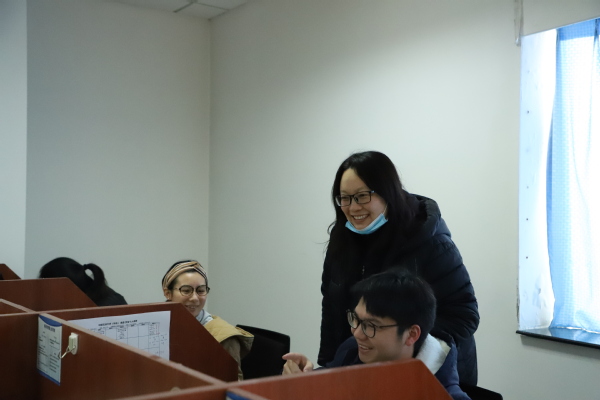 窦雅琴老师慰问员工们的学习情况 雷萌萌摄