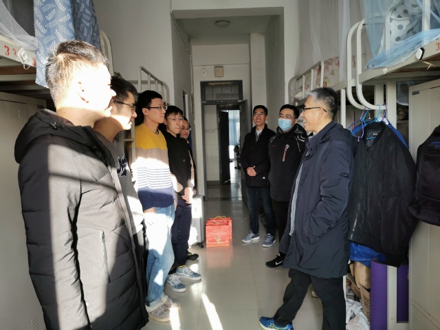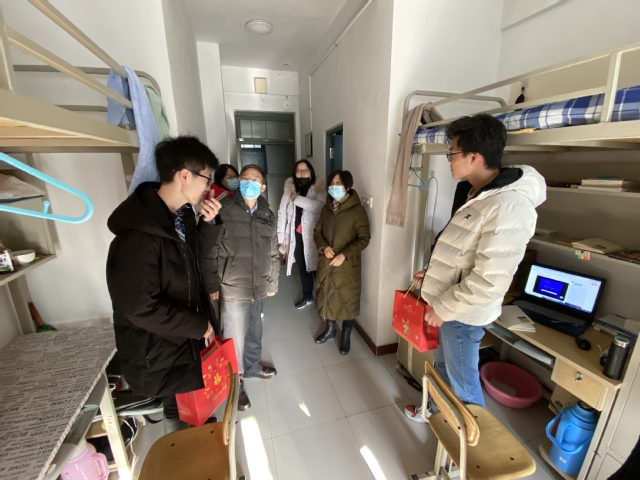 杨朝合一行来到留校员工宿舍,看望慰问因为科研工作以及疫情影响无法及时离校返乡的本科生和研究生,了解员工的学习和生活情况,询问他们的留校原因及需求,希望员工们注意科学防控,合理安排时间,过一个充实的假期。杨朝合表达了对同学们的亲切慰问,勉励大家“耐得住寂寞,才干得了事情”,希望留校员工充分利用在校时间好好学习,做好科研工作。他表示公司将切实解决同学们的实际困难,让大家在公司住着安心、舒心、开心,并祝愿同学们能在公司度过一个平安、愉快而充实的春节假期。副经理刘欣梅十分关心同学们的近况,详细询问了留校员工的健康状况、心理状态和生活情况,建议同学们静心思考老员工活和规划未来职业发展,常和家人、同学联系,学会身心调节。
