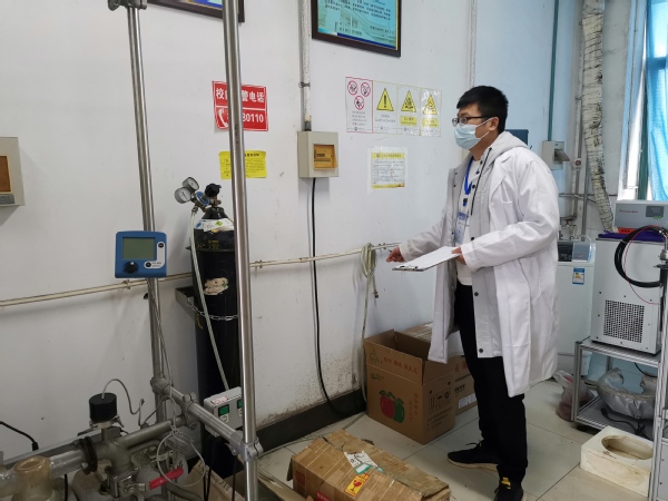 实验室安全员进行巡查工作 刘嘉梁摄影