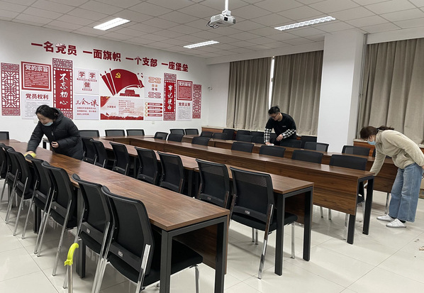 此次活动的主要任务是清扫公共实验室,为全体师生营造干净、整洁、安全的实验环境。按照工作安排,大家有序分工合作,在中心的每个公共实验室都能见到他们认真忙碌的身影。他们仔细地清扫了每一间实验室的地面,擦拭了每一台仪器和每一张桌面,再将实验室垃圾桶中的所有垃圾带走,并套换上新的垃圾袋。经过近1个小时的清理,生物中心所有公共实验室焕然一新。支部书记孙勇军在完成检查后对大家说:“无论是党员同志还是积极分子,要时刻强化自己的责任意识,主动靠前,发扬不怕苦不怕累的奉献精神,全心全意服务广大同学,希望大家不忘入党初心,时刻以共产党员的标准严格要求自己。”