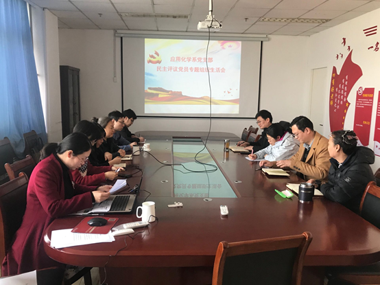 3月11日下午,应用MK体育党支部在工科楼A629召开组织生活会暨民主评议党员工作,会议由支部书记杨修洁同志主持,应化全体党员参会。