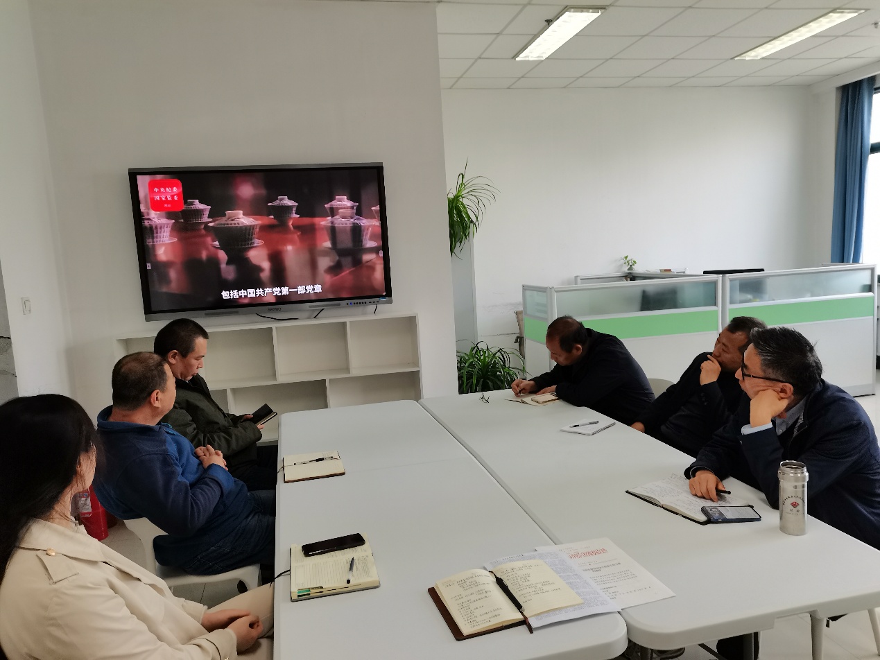 最后,党支部成员集体观看了《一部党章百年史》视频学习。通过主人翁张人亚的故事,讲述了党章的发展历程,回顾了党的发展历史。