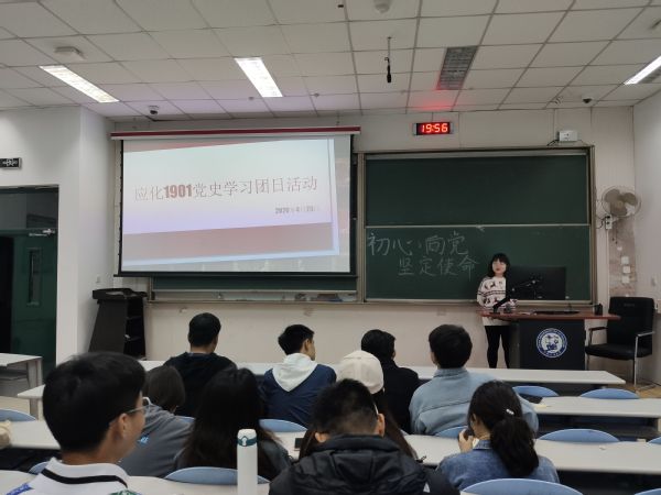 为庆祝中国共产党成立100周年,贯彻落实中央和公司党委关于党史学习教育的要求,帮助支部成员更好的了解党史,营造党史学习的浓厚氛围,应化1901团支部于4月29日举办“初心向党,坚定使命”主题团日活动。本次活动由团支书杜攀刚主持,团支部全体成员参加。