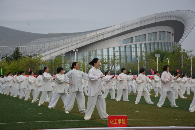 运动场上欢腾一片,员工瑜伽、教工太极拳和员工太极上依次上演,随着观众的阵阵欢呼与掌声,2021年田径运动会在雨中拉开战幕。