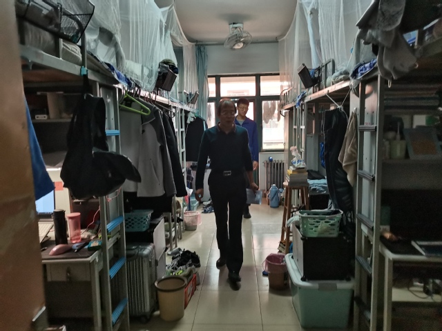 本次检查内容主要涉及宿舍安全及卫生情况,重点对宿舍的地面卫生、床铺整洁、宿舍线路、阳台卫生和室内空气等情况进行检查。本次检查发现宿舍卫生状况良好,整体符合标准,但个别宿舍存在桌面东西多、地面杂物堆积过多等问题。年级工作组及时做出评分,并在当天对相关员工进行批评教育,要求立即整改。检查过程中,辅导员还询问员工英语四六级考试准备情况,同时告诫同学要诚信考试。